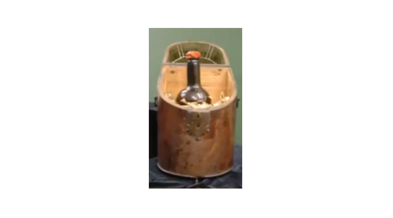 The answer is, the bottle of port was given to four Friends who were imprisoned in Fleet Prison during 1797 for the non payment of tithes (a tax to the Church of England). It was donated to the Library of the Society of Friends in 1898 on one condition, it is not to be opened until the Church of England is disestablished!