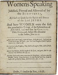 The pamphlet becomes one of the major texts on women’s religious leadership in the 17th century and today is celebrated as a key document in the history of women’s rights.